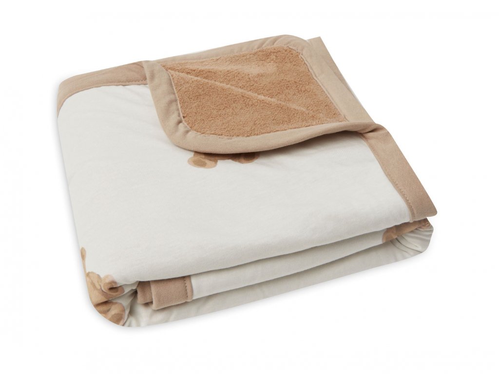 Táto úžasná deka medvedíka s podšívkou udrží vaše dieťatko dokonale v teple a zaručí mu tie najkrajšie sny. Sladké medvedíky s potlačou budú strážiť vášho anjelika. Veľkosť deky je ideálna do postieľky. Veľmi praktické je ale aj použitie na cestách alebo v kočíku. Deka je vyrobená zo 100% bavlny, vďaka čomu má výborne antibakteriálne a hrejivé vlastnosti. Môžete ju použiť do kočíka alebo len tak na posteľ. Podšívka je vyrobená z mäkkého fleecu.