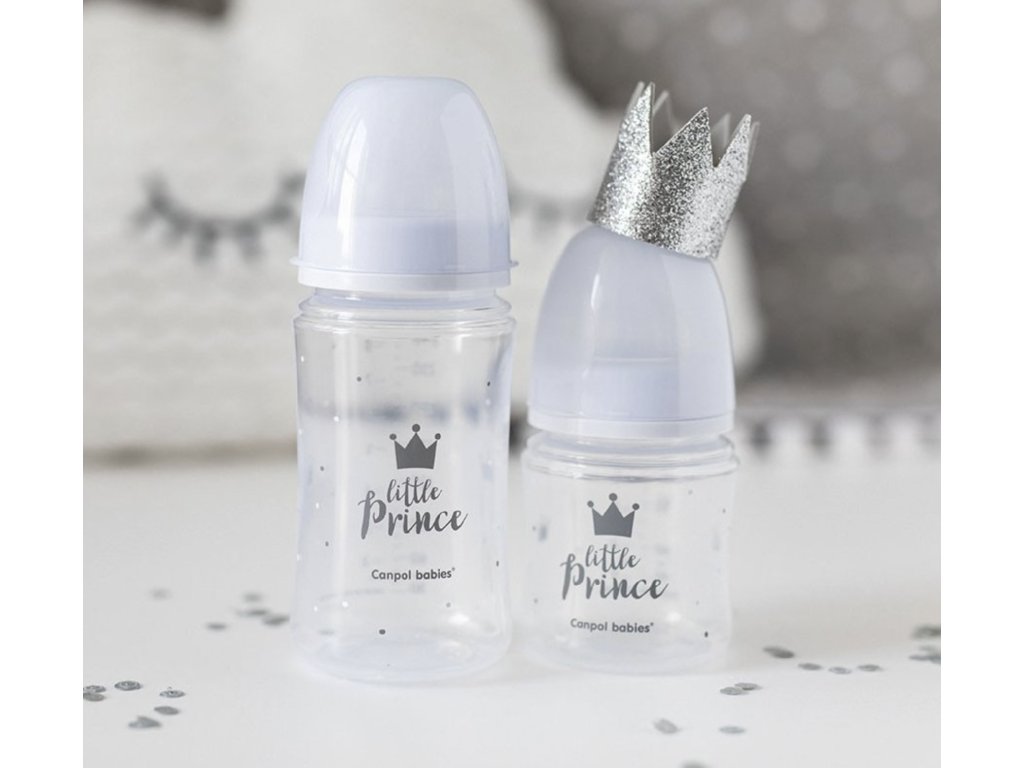 Tvarovaná polypropylénová fľaša Canpol babies EasyStart z kolekcie Royal baby s objemom 120 ml sa veľmi komfortne drží pri kŕmení. Umývanie a napĺňanie bude jednoduchšie vďaka širokému hrdlu. Výrazná stupnica umožnuje kontrolu vypitého množstva nad dieťatom. Flaška má anti-kolikový cumlík 0-3m, pričom svojim prevedním pripomína matkin prsník a tak umožňuje dieťaťu dojčiť aj kŕmiť z fľaše zároveň. Uzavieracie tesniace viečka na fľaši umožnuje pokrm bezstarostne zmrazovať a transportovať bez rizika vyliatia. Nový najkvalitnejšie polypropylén (PP) zaisťuje vysokú kvalitu, bezpečnosť a transparentnosť fľaše. Fľaša neobsahuje BPA. Fľaša je vyrobená v EÚ.