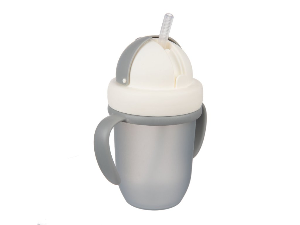 Elegantný pohárik s objemom 210ml a skladacou silikónovou slamkou v matnom sivom prevedení. Pohárik je určený pre detičky od 9 mesiacov, ktoré už vedia samé piť. Je ideálny na cestovanie alebo prechádzky. Praktické uška na poháriku skvele padnú do malých detských ručičiek. Priehľadny materiál zaisťuje lepšiu kontrolu vypitého množstva tekutín. Hrnček neobsahuje BPA a je odolný proti poškodeniu. Skladacia silikónova slamka zabraňuje rozliatiu.