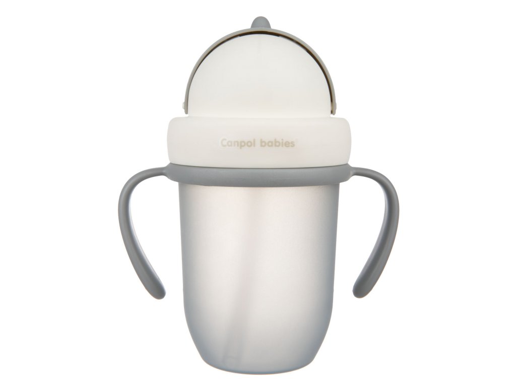 Canpol Babies Hrnček so silikónovou slamkou 210ml - sivá