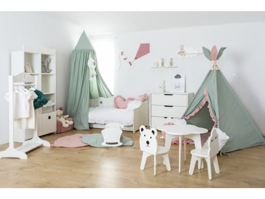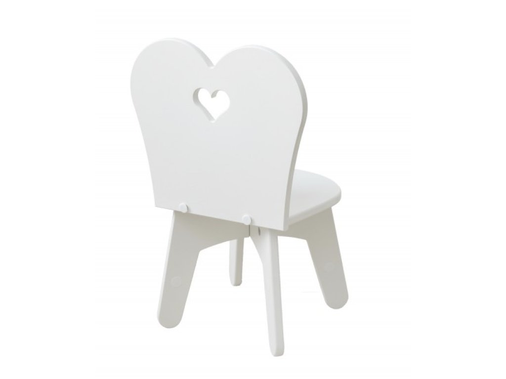 Moderná detská stolička v tvare srdiečka v bielej farbe, ktorá si nájde svoje miesto v každom detskom kútiku. Okraje stoličky sú zaoblené, čím sa zvýši bezpečnosť používania. Stolička má masívne nohy, vďaka čomu je veľmi stabilná.