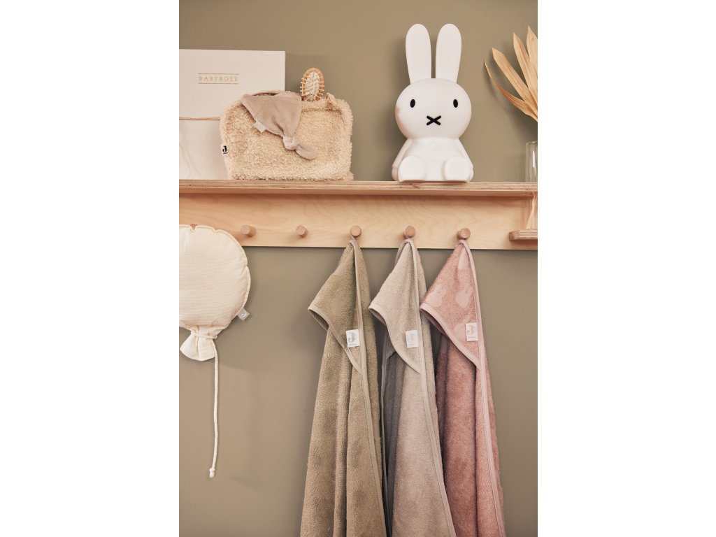 Moderný detský uterák z kolekcie Happy Miffy s kapucňou, ktorý je ušitý z kvalitnej bavlny s certifikátom Oeko-Tex. Ide o ideálny kúsok pre každé dieťa, ktoré rodičia využijú po každom kúpaní. Stačí dieťatko zabaliť do uteráka a bude sa cítiť pohodlne ako v bavlnke. Kapucňa zabráni prechladnutiu a rýchlo osuší hlavičku dieťatka. Uterák má praktické uško na zavesenie. Vďaka svojej zaujímavej farbe je ideálny tak pre dievčatko ako aj chlapčeka.
