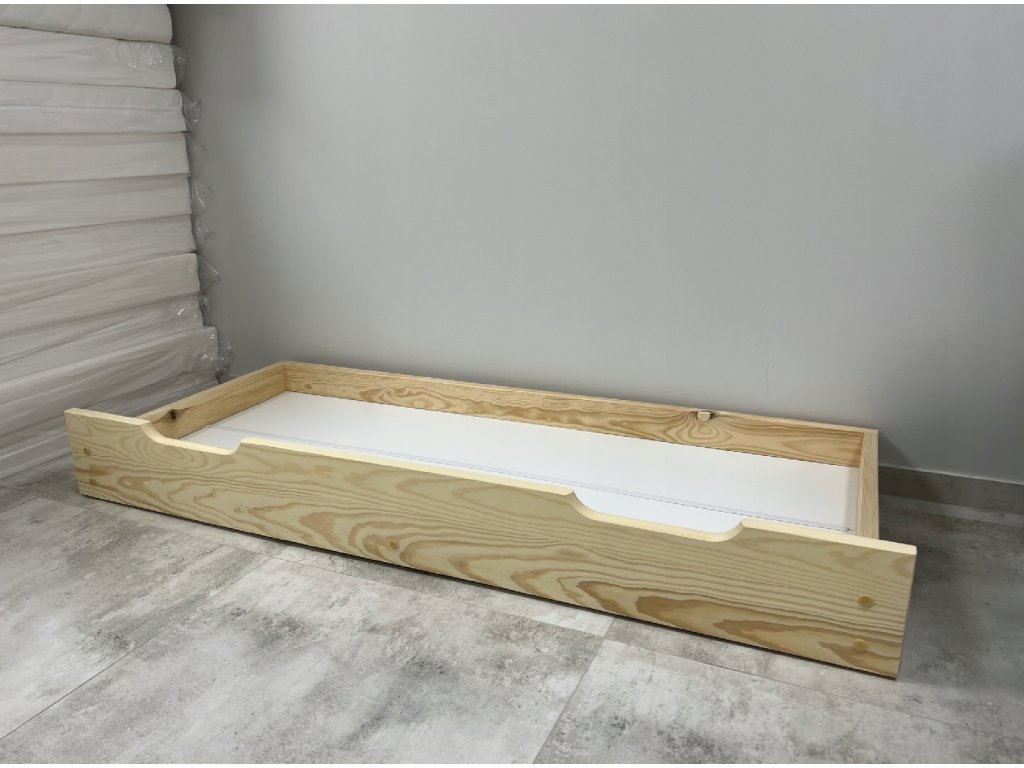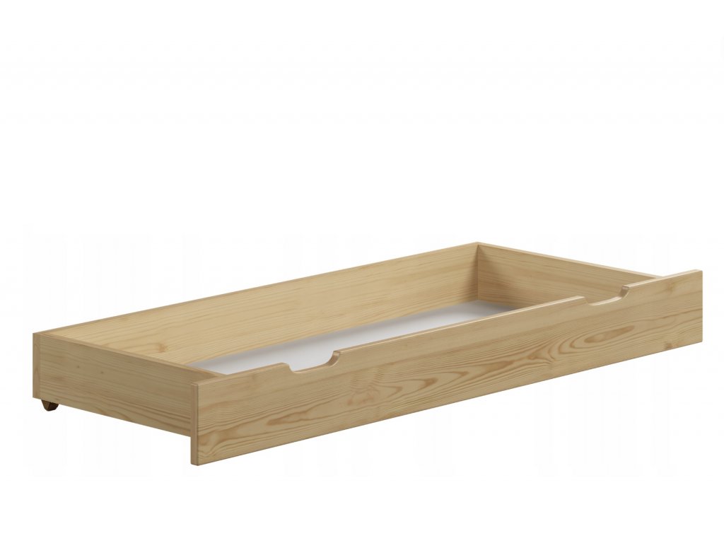 Ak potrebujete úložný priestor v borovicovom prírodnom odtieni, potom je tento box pre vás ideálnym riešením. Pre väčšiu životnosť je lakovaná ekologickým bezpečným náterom. Nezaberie žiadne miesto naviac, pretože sa zmestí priamo pod vašu detskú posteľ, s ktorou ladí aj štýlovo. Zásuvka z pravého smrekového dreva s plným dnom. Zásuvka má pevné kolieska, vďaka ktorým je vysúvanie a zatváranie praktické. Označenie rozmerov boxu je pre postele, neodráža však jeho hĺbku.