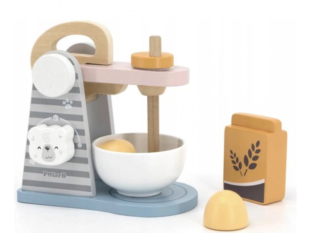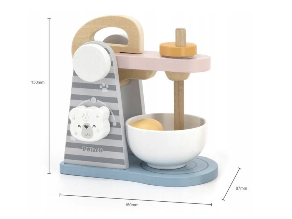 Nádherný drevený mixér, ktorý dokonale obohatí zbierku hračiek na varenie v detskej kuchynke. Spoločná príprava jedál je skvelé učenie sa hrou. Každá kuchyňa má mixér, ktorý vám pomôže pripraviť vaše obľúbené koláče, torty a iné sladkosti. Pripravte si domáce pečenie spolu s dieťaťom! Takáto súprava dokonale spestrí každú detskú kuchynku - povzbudí dieťa k skúšaniu nových jedál a pomôže pri príprave jedál.