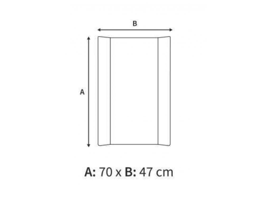 - Mäkká prebaľovacia podložka s dĺžkou 70 cm a šírkou 47 cm (+/- 0,5 cm) je vhodná na umiestnenie na komodu
