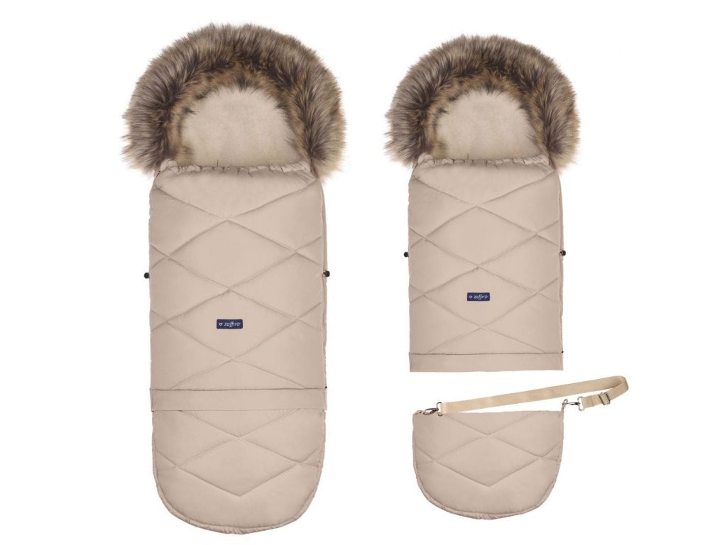 Fusak vďaka obsahu nadýchanej antialergickej netkanej textílie poskytuje ochranu a pohodlie aj v tých najchladnejších dňoch. Zaffiro je vyrobené z kvalitných nepremokavých a vetruodolných materiálov, ktoré ochránia bábätko pred dažďom, snehom a vetrom. Navyše tkanina odolná voči škvrnám zabraňuje znečisteniu, poskytuje dlhotrvajúci a estetický vzhľad. Jedinečný dizajn dopĺňa odnímateľná umelá kožušina. Vďaka univerzálnemu systému otvorov pre bezpečnostné pásy je spací vak vhodný prakticky do všetkých kočíkov. Spací vak je vhodný do hlbokých kočíkov, športových kočíkov a saní. Umelá kožušina sa dá odopnúť na zips, vrchná časť spacieho vaku sa dá stiahnuť do teplej kapucne. Úprava pomocou zipsov umožňuje meniť dĺžku spacieho vaku tak, aby lepšie sedel dieťaťu na čiapočku.